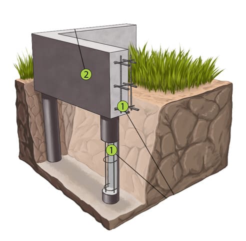 Свайно-ростверковый фундамент представляет собой объединение двух эффективных технологий для строительства разнообразных сооружений на неблагоприятных участках. Состоит из свай ( металлических или железо бетонных), установленных глубже уровня промерзания почвы, и связывающего их ростверка. Такая конструкция обеспечивает высокую надежность основания и позволяет возводить громоздкие сооружения на почвах со сложными условиями. Наша компания предлагает закладку свайно-ростверкового фундамента под ключ. Стоимость возведения зависит от выбранных материалов и методов установки.